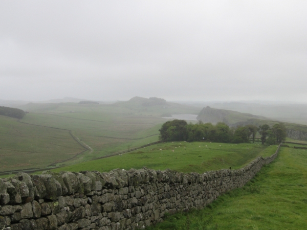 Grey, misty morning, looking back at Steel Rigg and Peel